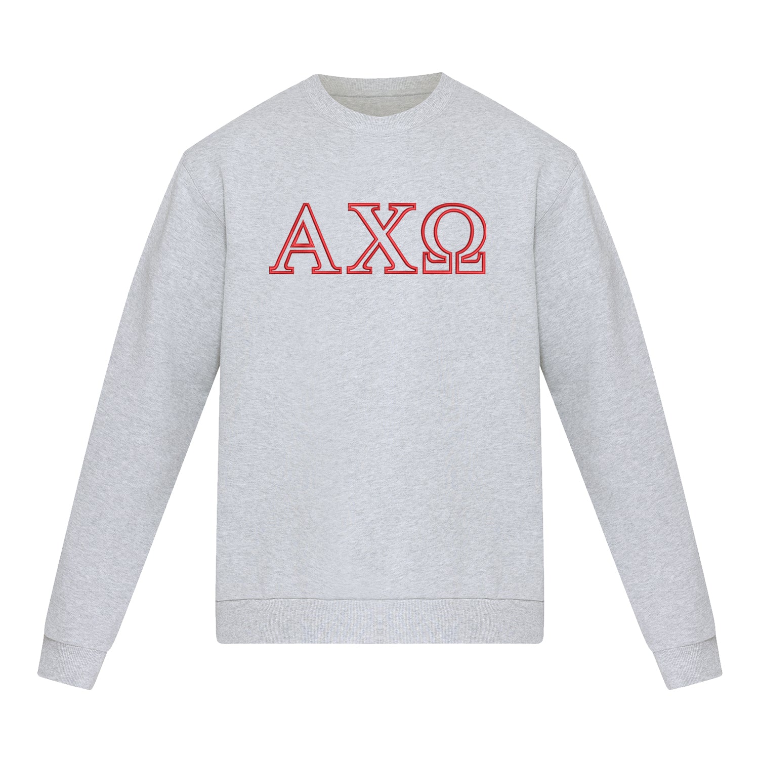Made by lululemon, brought to you by Sorority Letters Shop. Consider your classic sweats officially elevated. Alpha Chi Omega Steady State puts softness first to bring comfort wherever you go. Perfectly oversized unisex fit. Cozy fleece is brushed on the inside for next-to-skin warmth. Crewneck sweatshirt in heathered grey is embroidered with large Alpha Chi Omega outlined letters in red or tonal grey. Soft, cozy, casual.