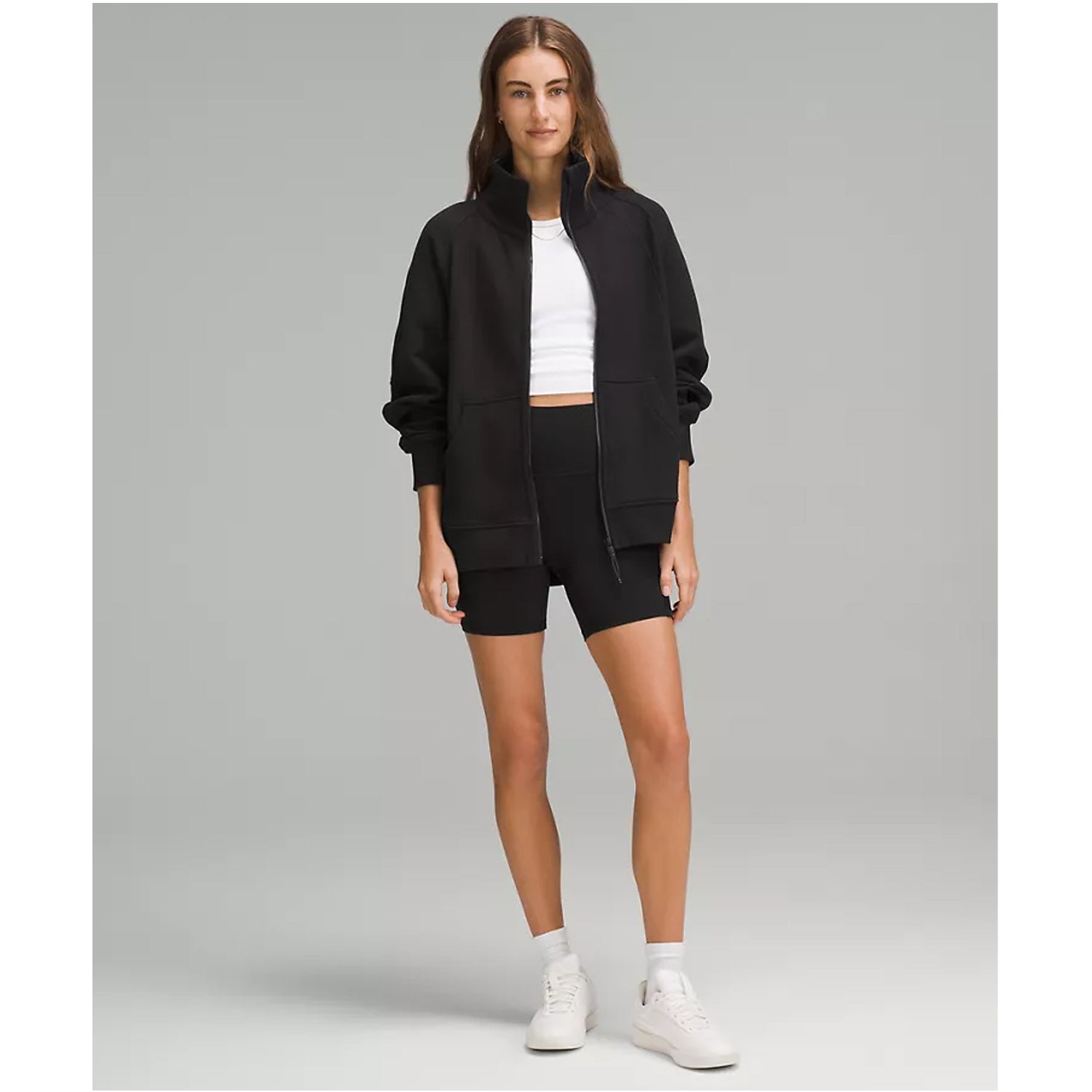 Made by lululemon, brought to you by Sorority Letters Shop, this oversized Scuba full zip funnel neck comes embroidered with the Alpha Gamma Delta Greek letters.  Crafted for effortless everyday wear, this cotton-blend fleece delivers natural breathability and gentle comfort against your skin. The oversized silhouette provides generous room to move, while the extended length ensures full coverage of your hips and bum. Lightweight yet warm, it's the perfect layering piece for transitional weather or relaxed lounging.  Choose from navy, black or heathered core ultra-light grey. This campus must have is the perfect Alpha Gamma Delta sorority gift.