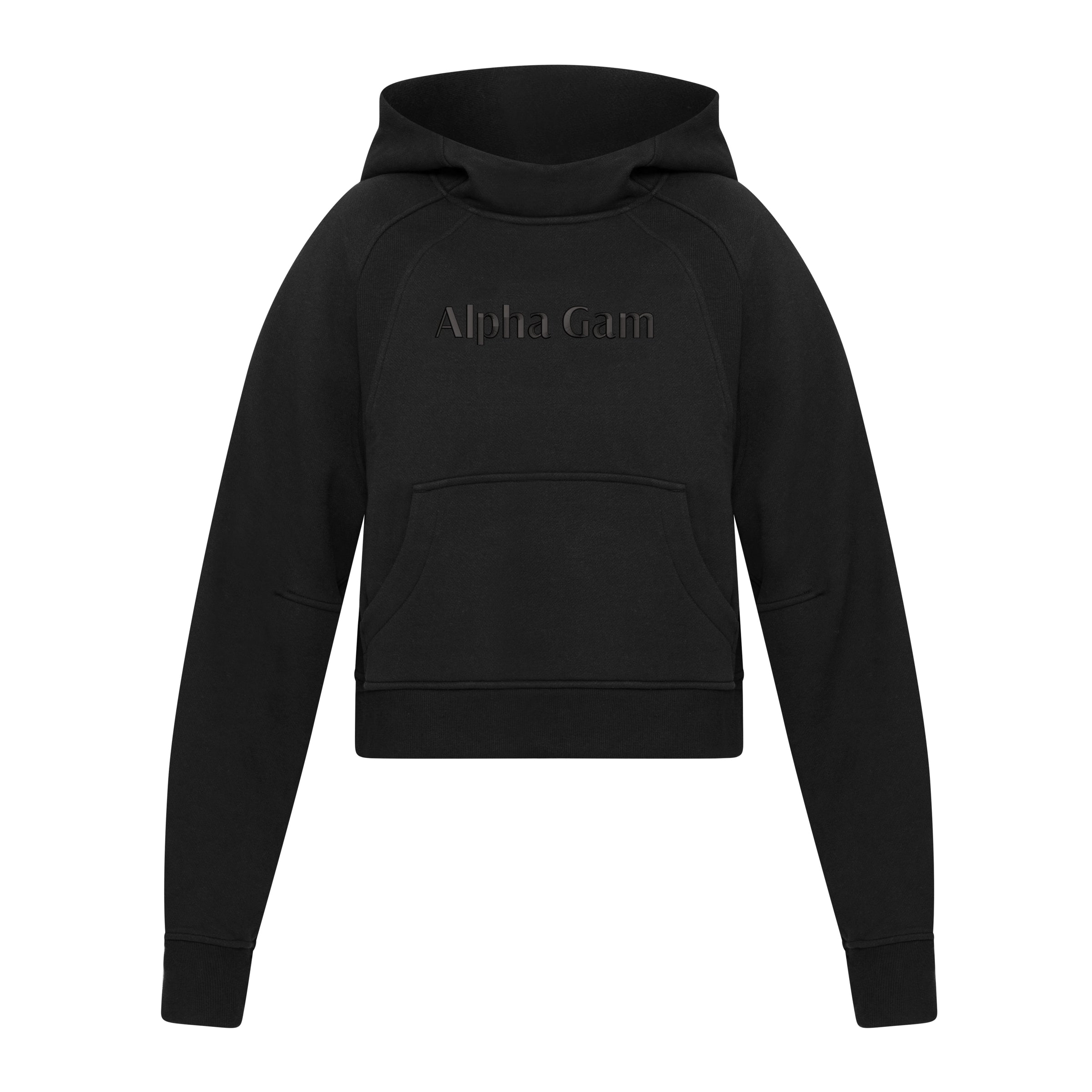 Alpha Gam embroidered in black.