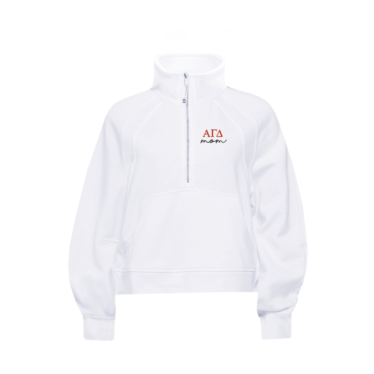 Made by lululemon, brought to you by Sorority Letters Shop, this is the must have scuba for any sorority mom. Classic lululemon oversized, crop length, half-zip funnel neck comes embroidered with the Alpha Gamma Delta mom on the front. With an oversized fit, a cozy funnel neck, and the soft fabric you love, this Scuba silhouette maximizes ultimate comfort at your next parent's weekend or tailgate.