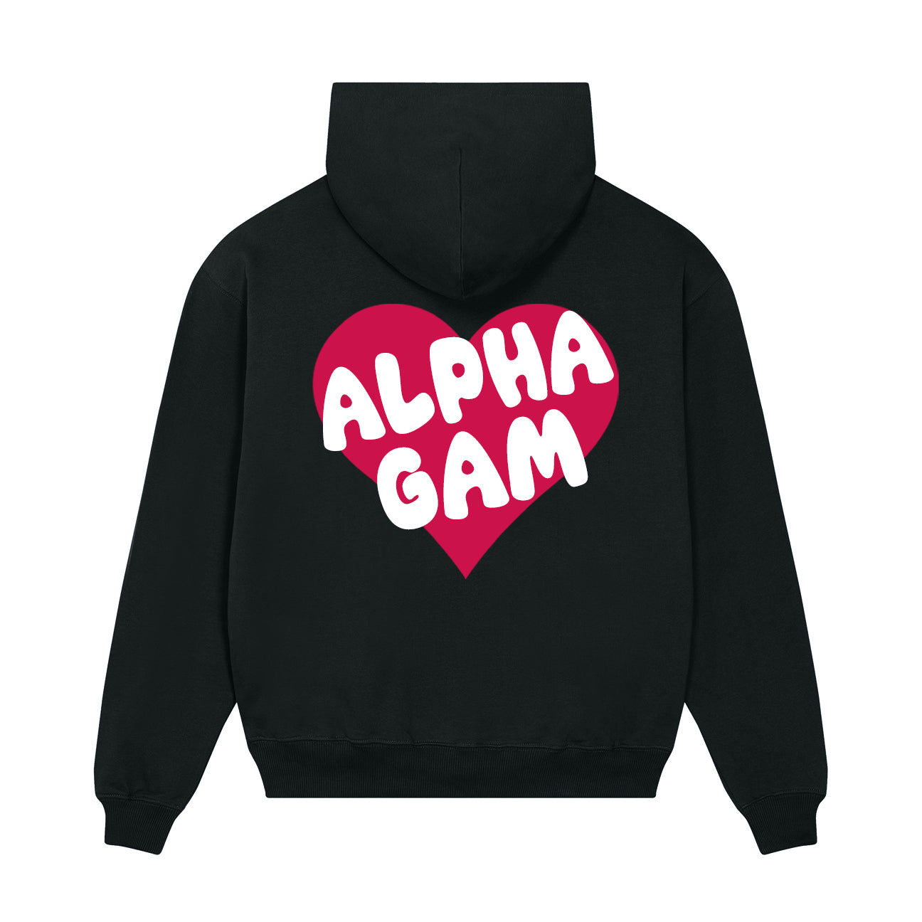 It's time to update your Alpha Gamma Delta Hoodie collection! Available now...our Alpha Gam Oversized Heart hoodie featuring a red heart with Alpha Gam in white.