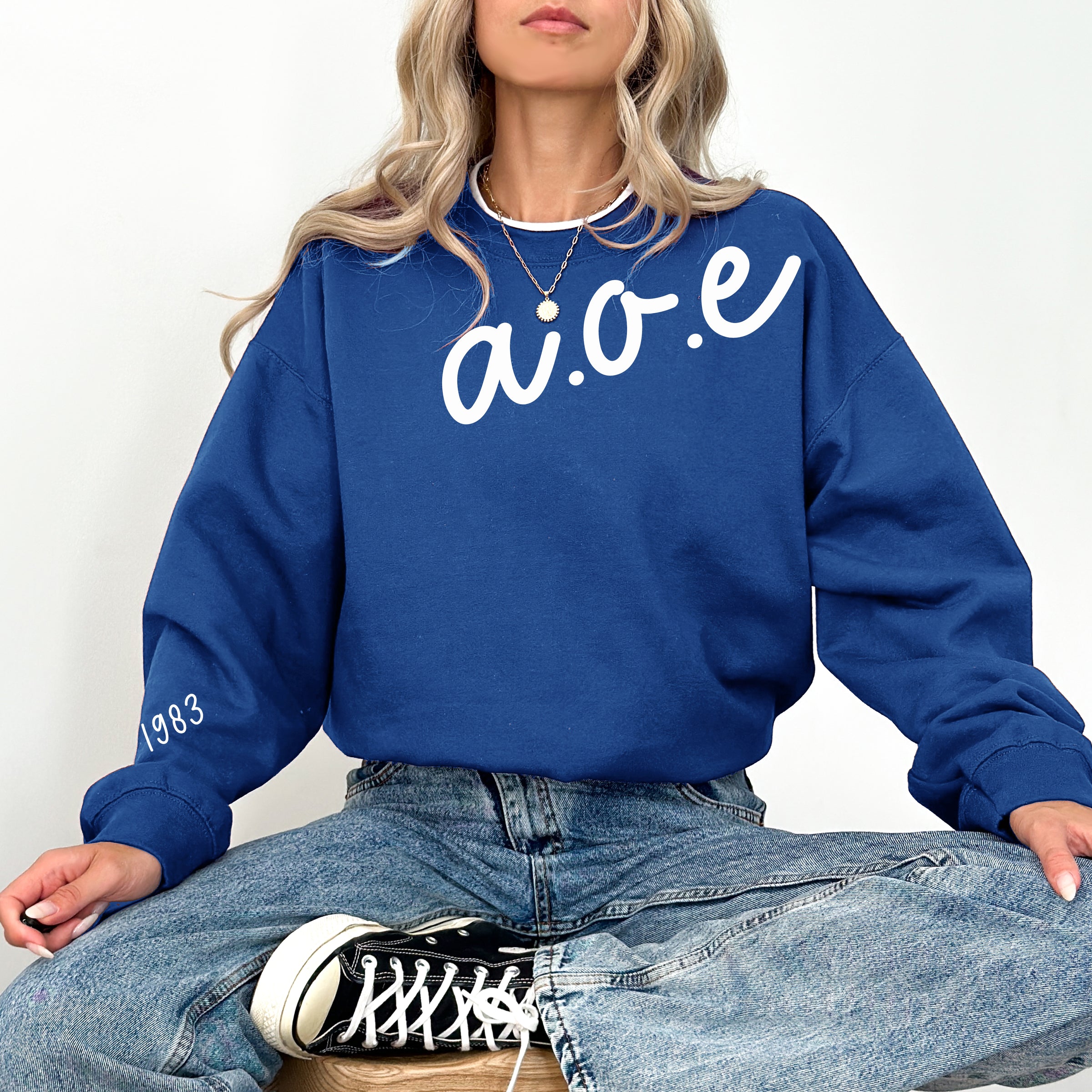 It's time to update your Alpha Omega Epsilon crewneck collection! Available now...our a.o.e. 1983 crewneck available in royal with white print