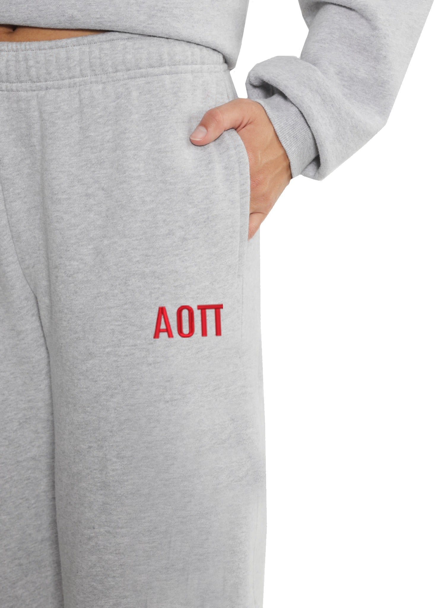 Introducing your new Fave Fit straight leg sweatpants. Super cute and comfy, made from cloud like fleece, these new sweatpants are a fall must have! Sweatpants come embroidered with Alpha Omicron Pi Greek letters. Mix and match with our Fave Fit hooded sweatshirt and shorts.