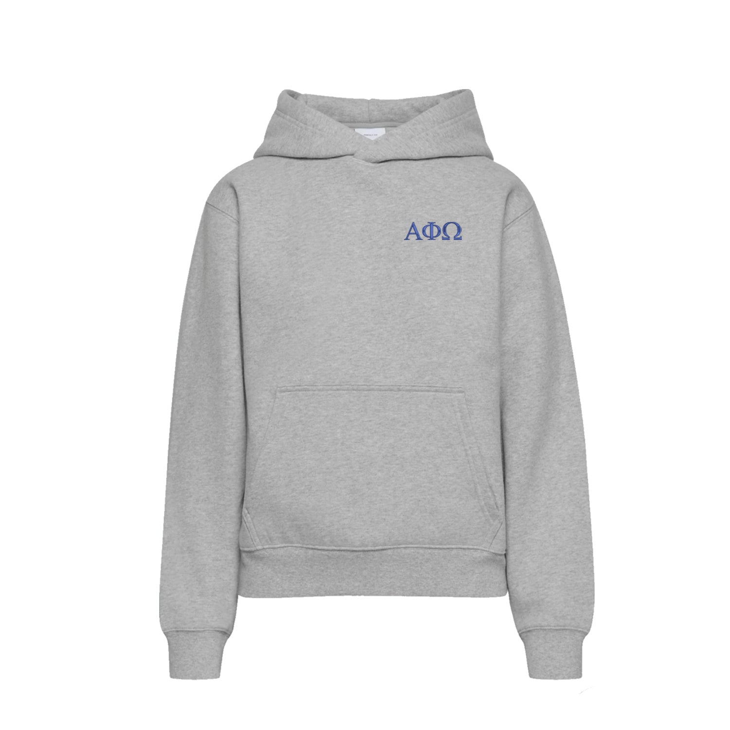 Hooded Pullover and fleece short set both embroidered with Alpha Phi Omega Greek letters.