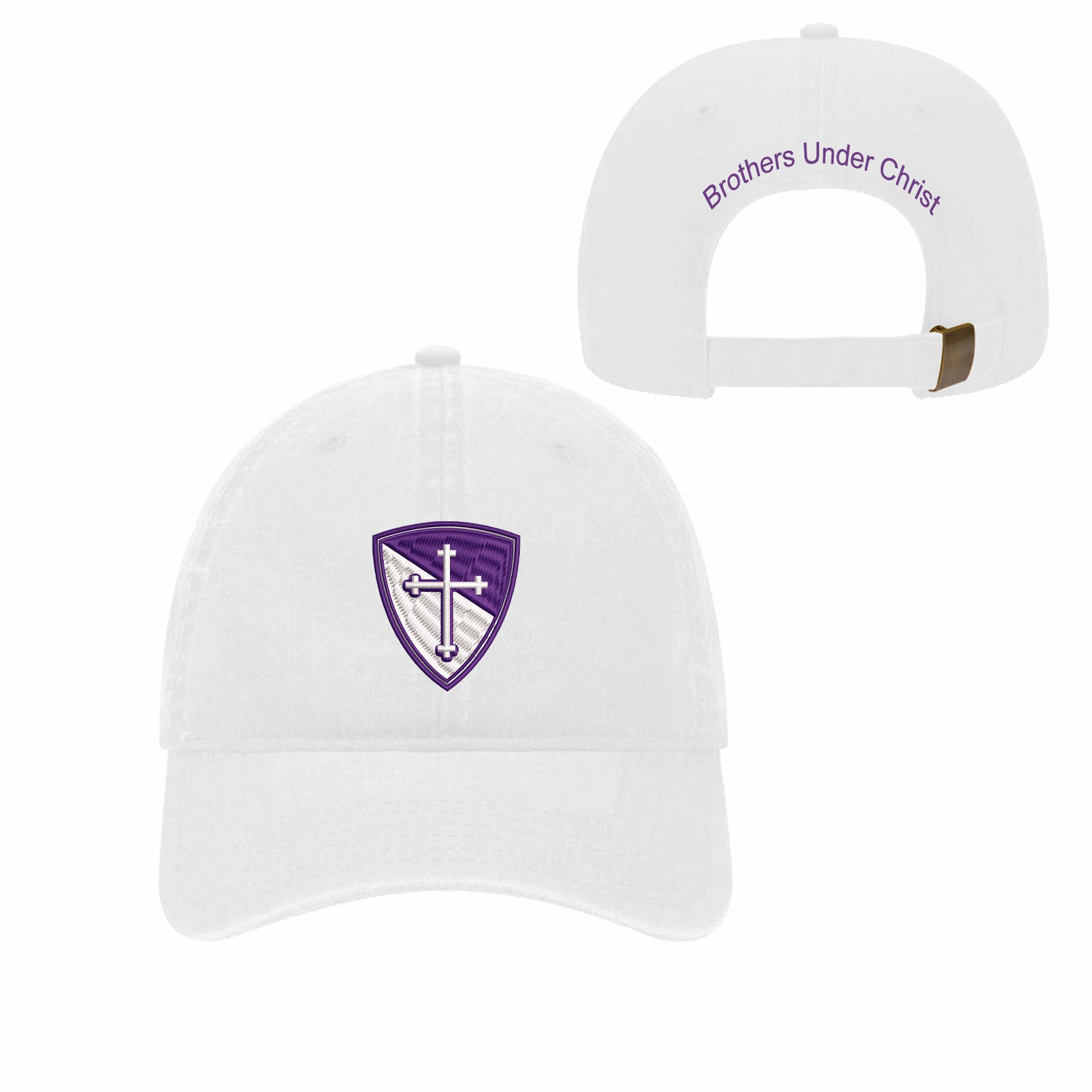 Beach Washed cotton twill hat with the Beta Upsilon Chi Shield embroidered on the front. Brothers Under Christ embroidered on the back of the hat. Our popular pigment dyed garment washed cap has a lived-in look with a soft crown lining. Great for all year round.