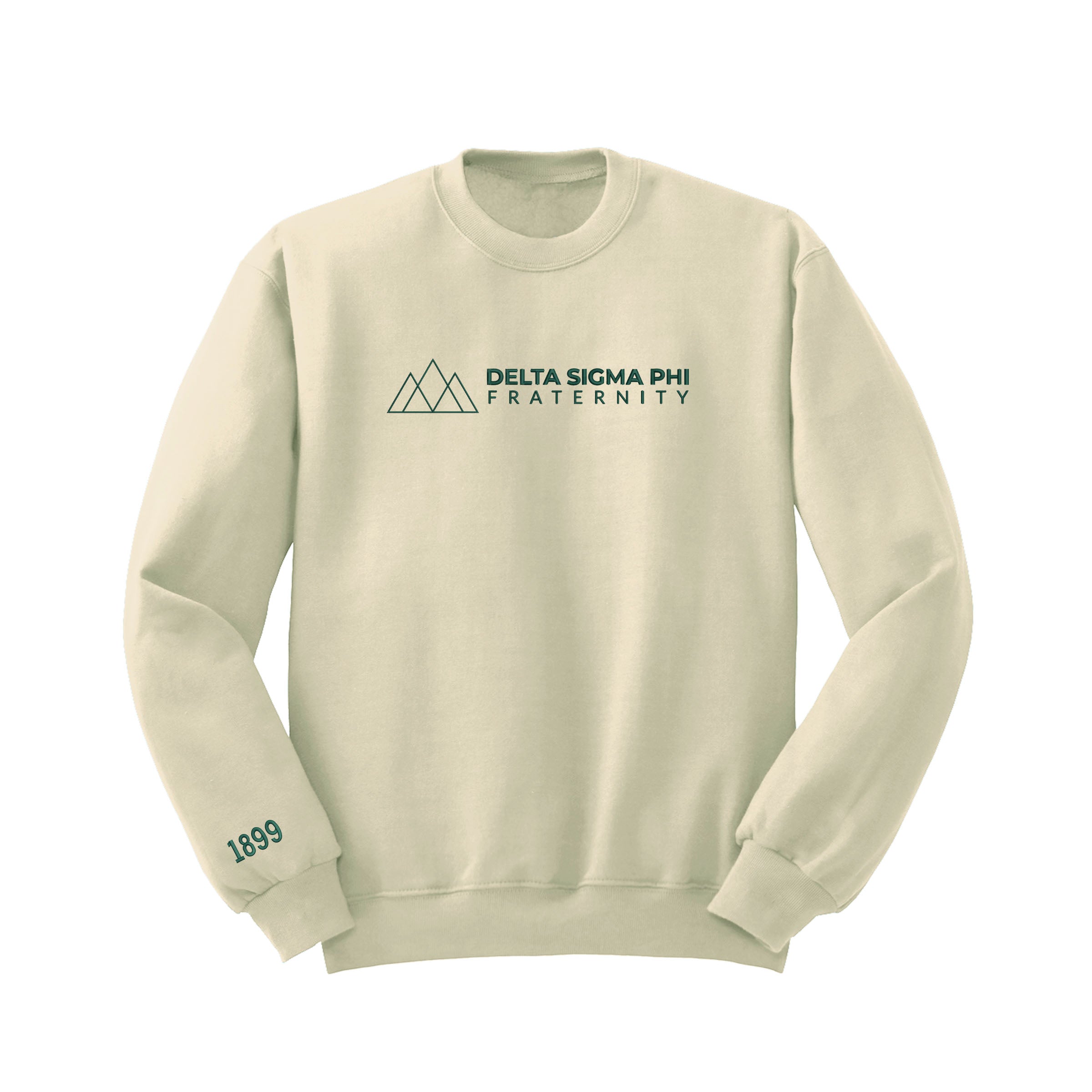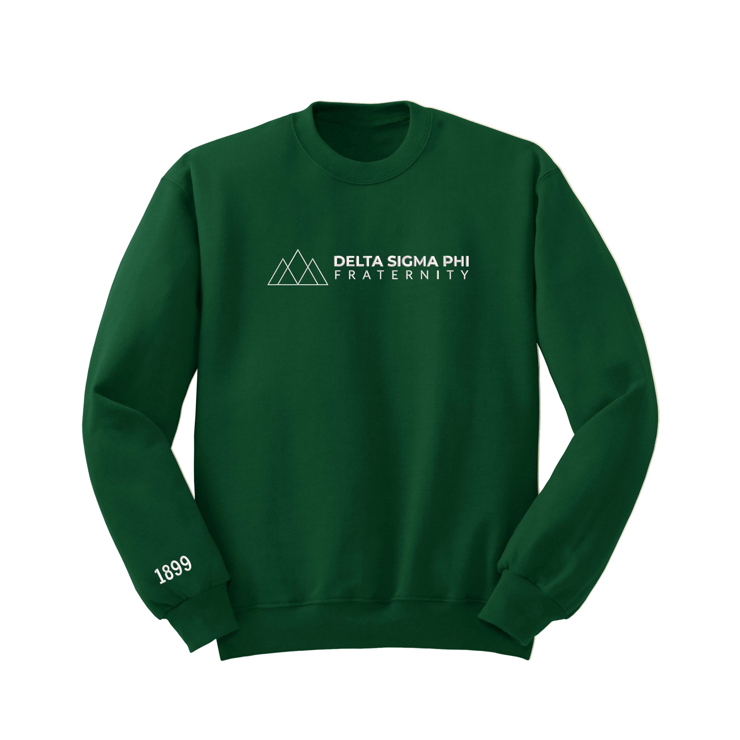 Classic crewneck sweatshirt comes embroidered with the new Delta Sigma Phi logo.