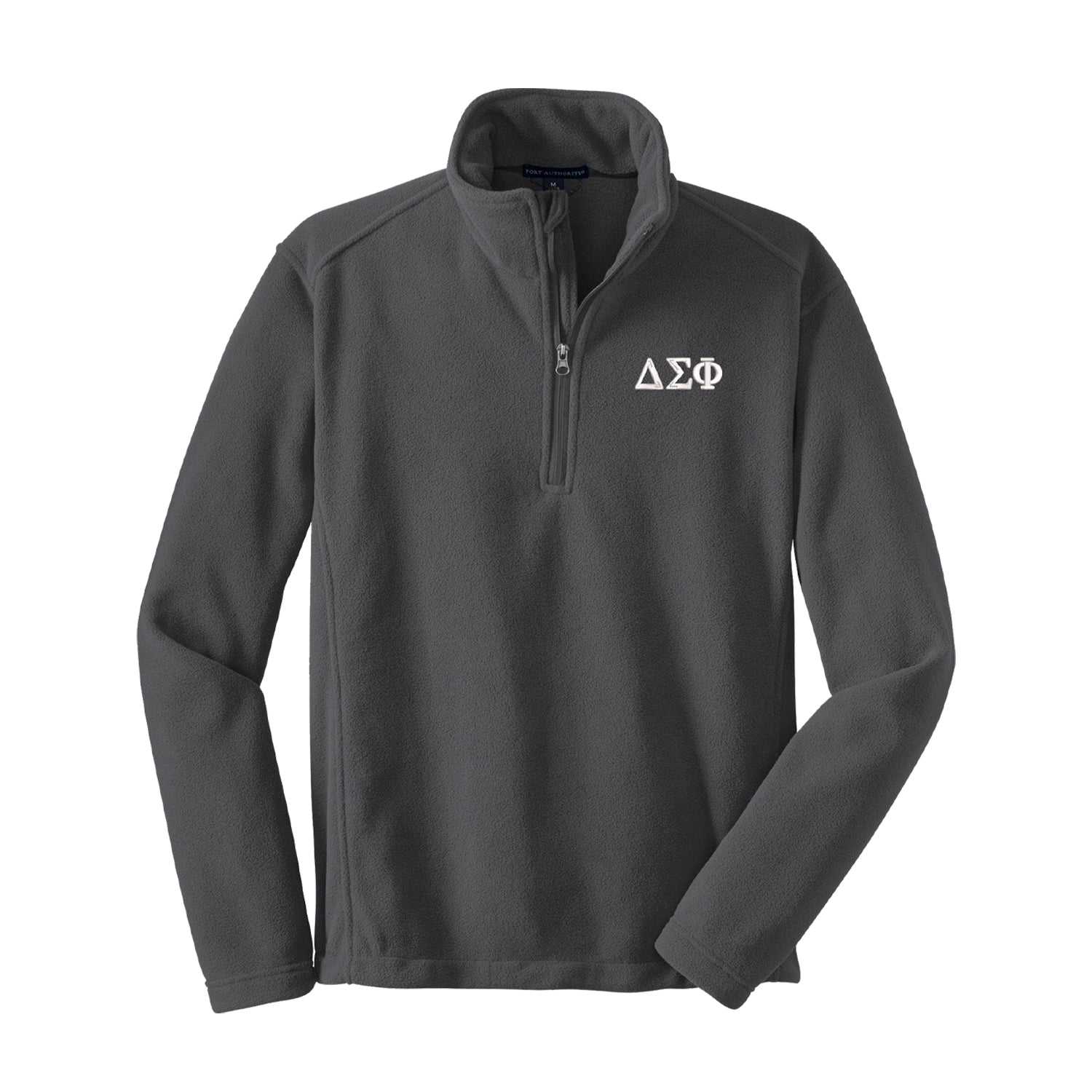 Medium weight fleece quarter zip with Delta Sigma Phi Greek letters