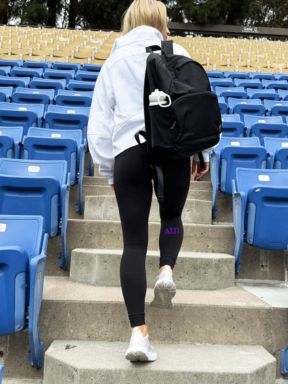 A buttery-soft feel and a weightless fit make these leggings perfect for stretching, strengthening, and relaxing. Made by lululemon, brought to you by Sorority Letters Shop, you'll love this buttery-soft, weightless comfort—perfect for your practice and beyond. Often imitated, never duplicated. Our iconic fabric is buttery soft, always. Leggings available in black with your Delta Sigma Pi letters printed on the left calf.