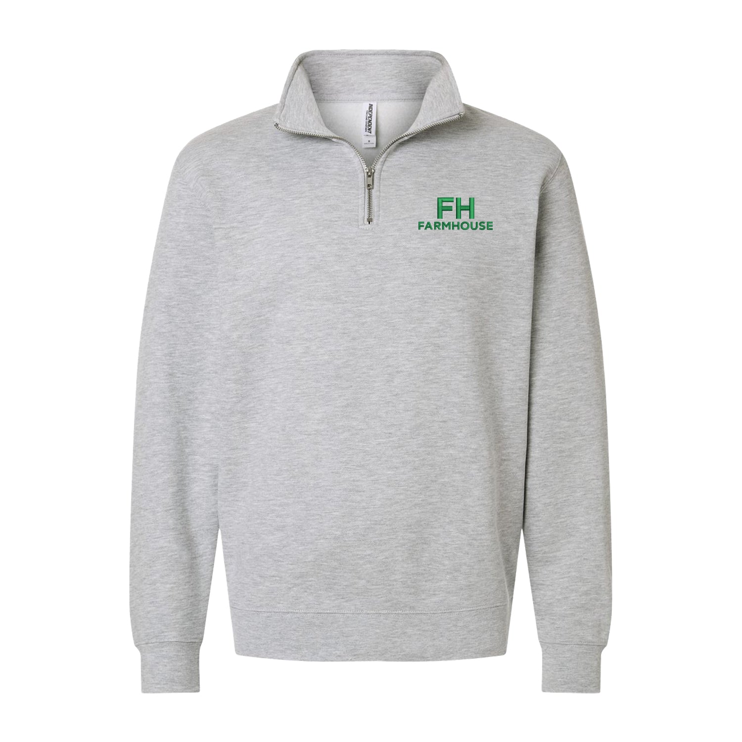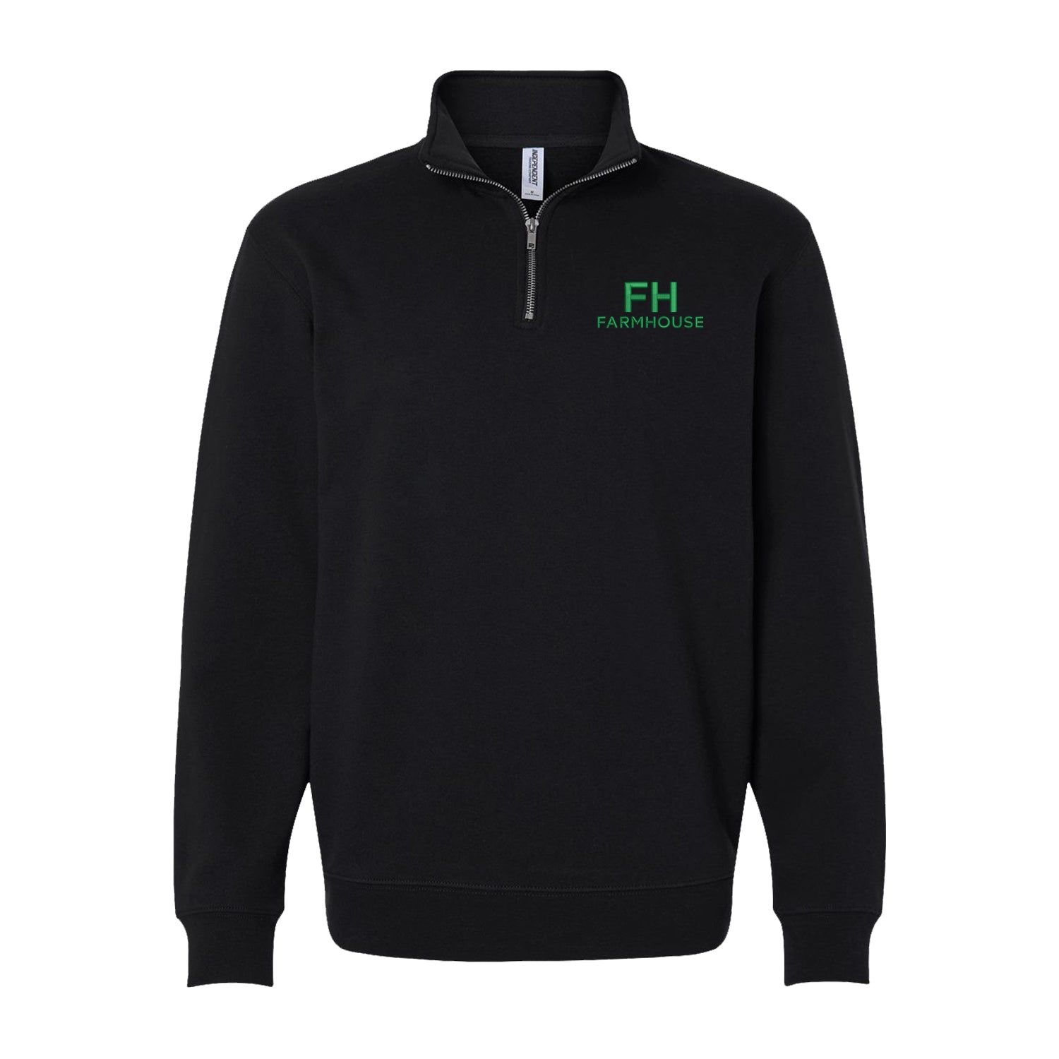 Classic style quarter zip sweatshirt embroidered with FARMHOUSE on left chest.