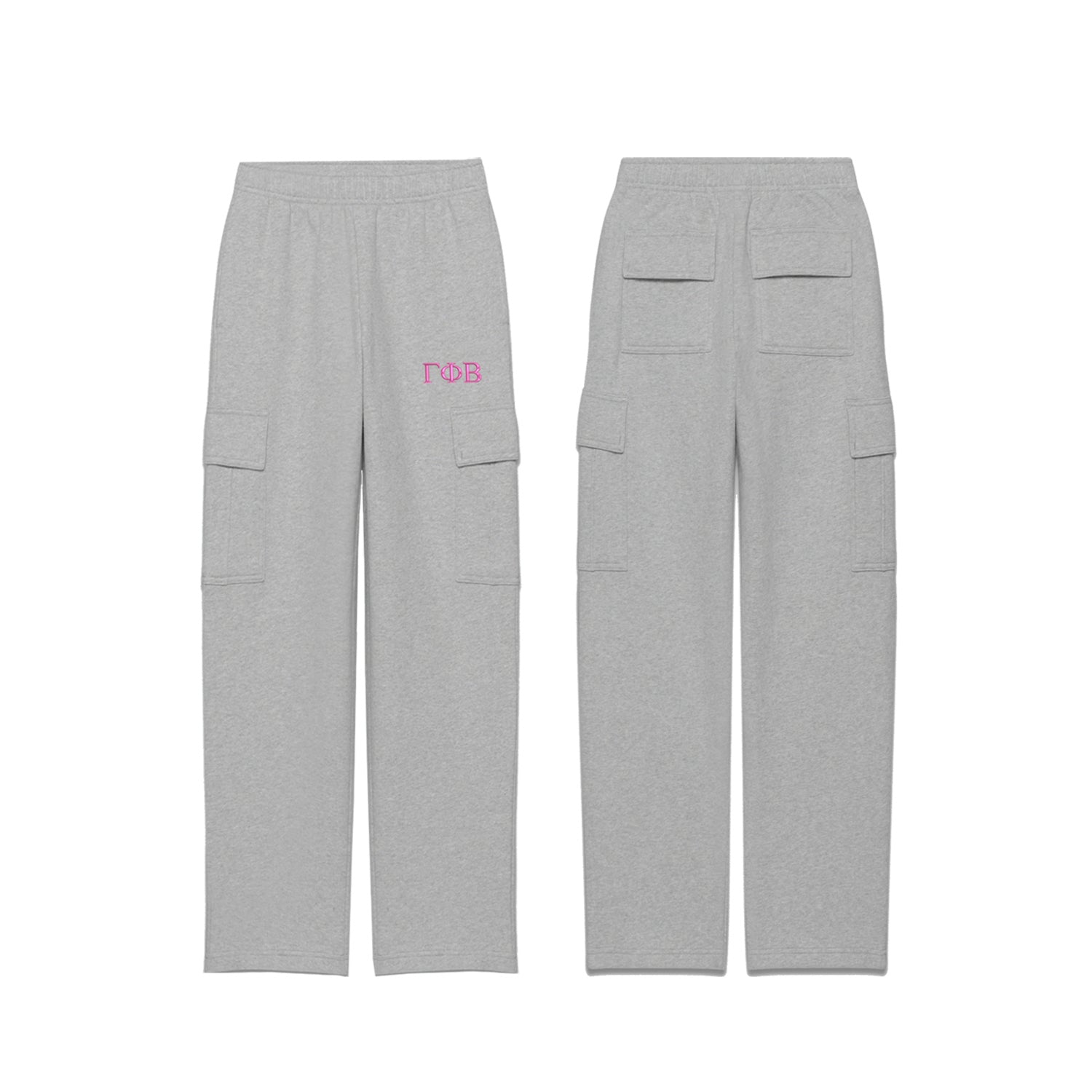 Introducing our new Gamma Phi Beta Fave Fit cargo fleece set. Super cute, hip and COMFY, these new sweatpants are a fall must have! Cargo sweatpants & hoodie, both come embroidered with Gamma Phi Beta Greek letters. The fit is perfectly oversized with classic cargo pockets and wide legs for superior comfort. Mix and match with our Fave Fit shorts to complete the set.