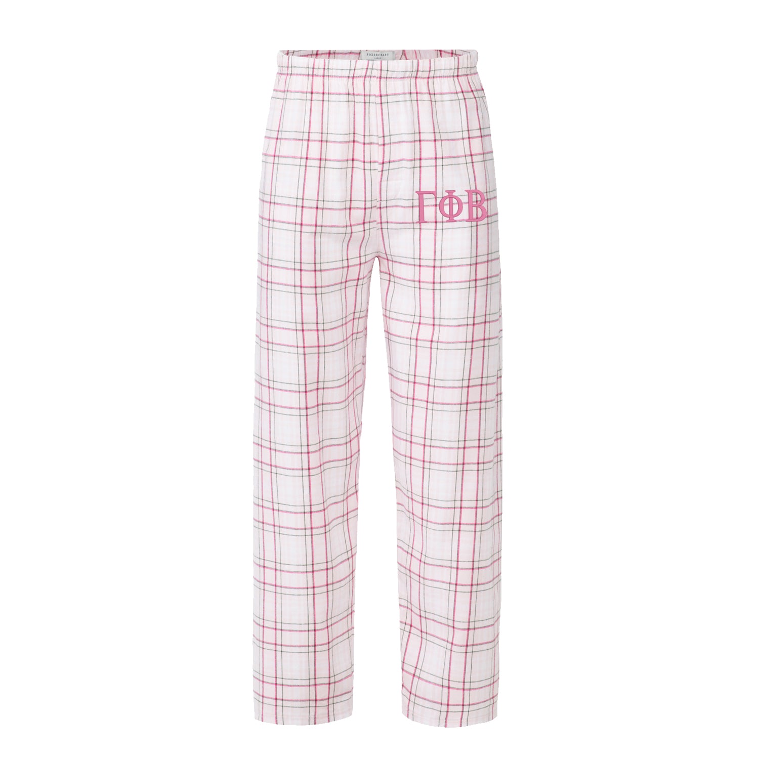 Lounge around in your dorm or sorority house in these super comfy flannel pants. Our beautiful flannel pj pants come with Gamma Phi Beta Greek letters embroidered on the left hip. Buy for yourself or they make a great gift for your favorite G Phi B! Select color and size from the drop down menu. Custom colors are available upon request.