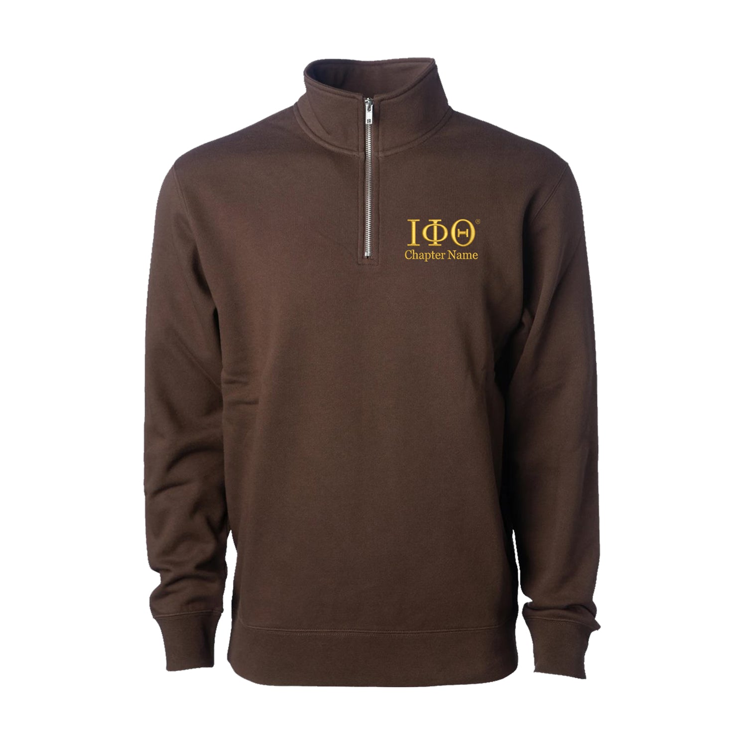 Classic style quarter zip sweatshirt embroidered with the Iota Phi Theta Greek letters and your chapter name in Iota Gold.