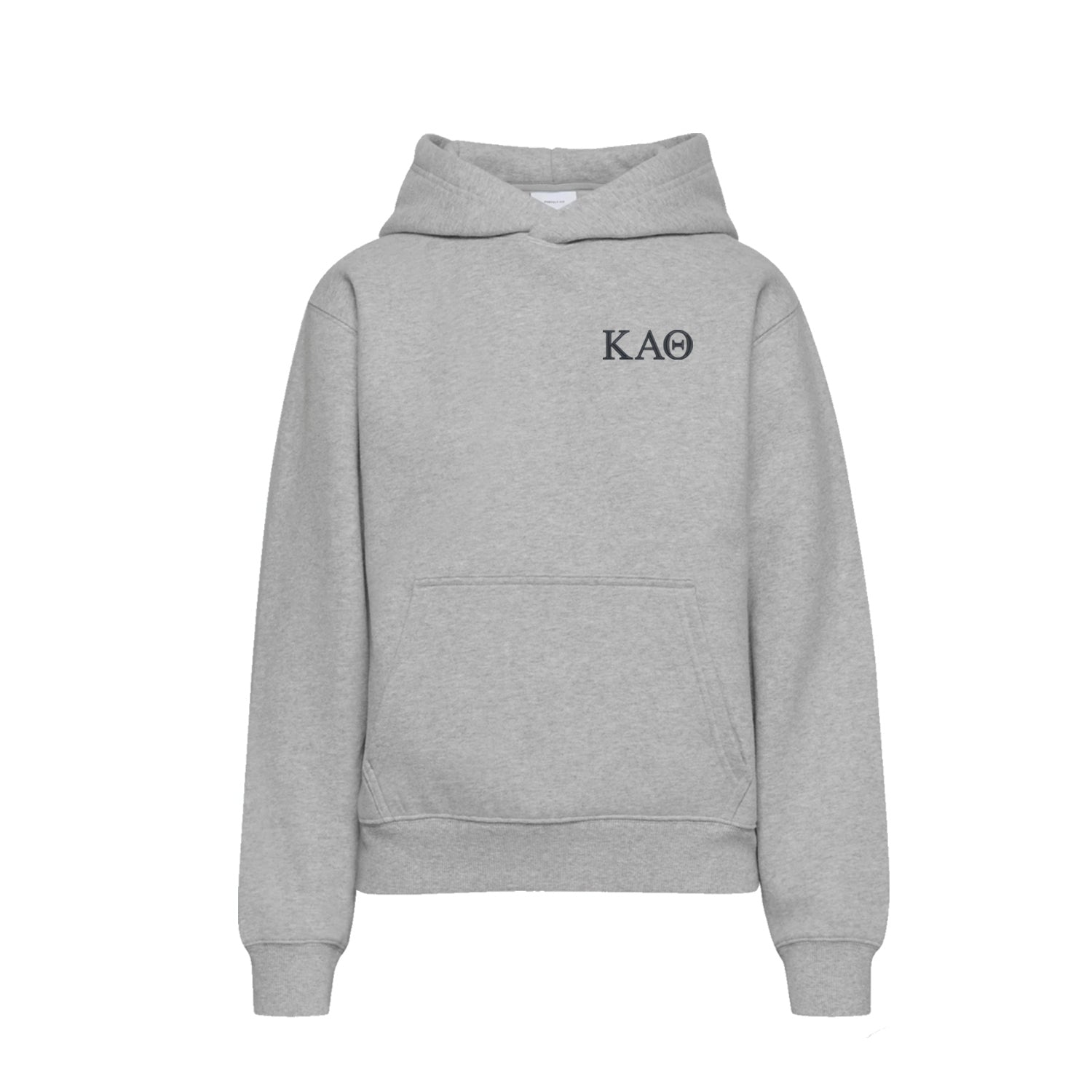 Hooded Pullover and fleece short set both embroidered with Kappa Alpha Theta Greek letters.