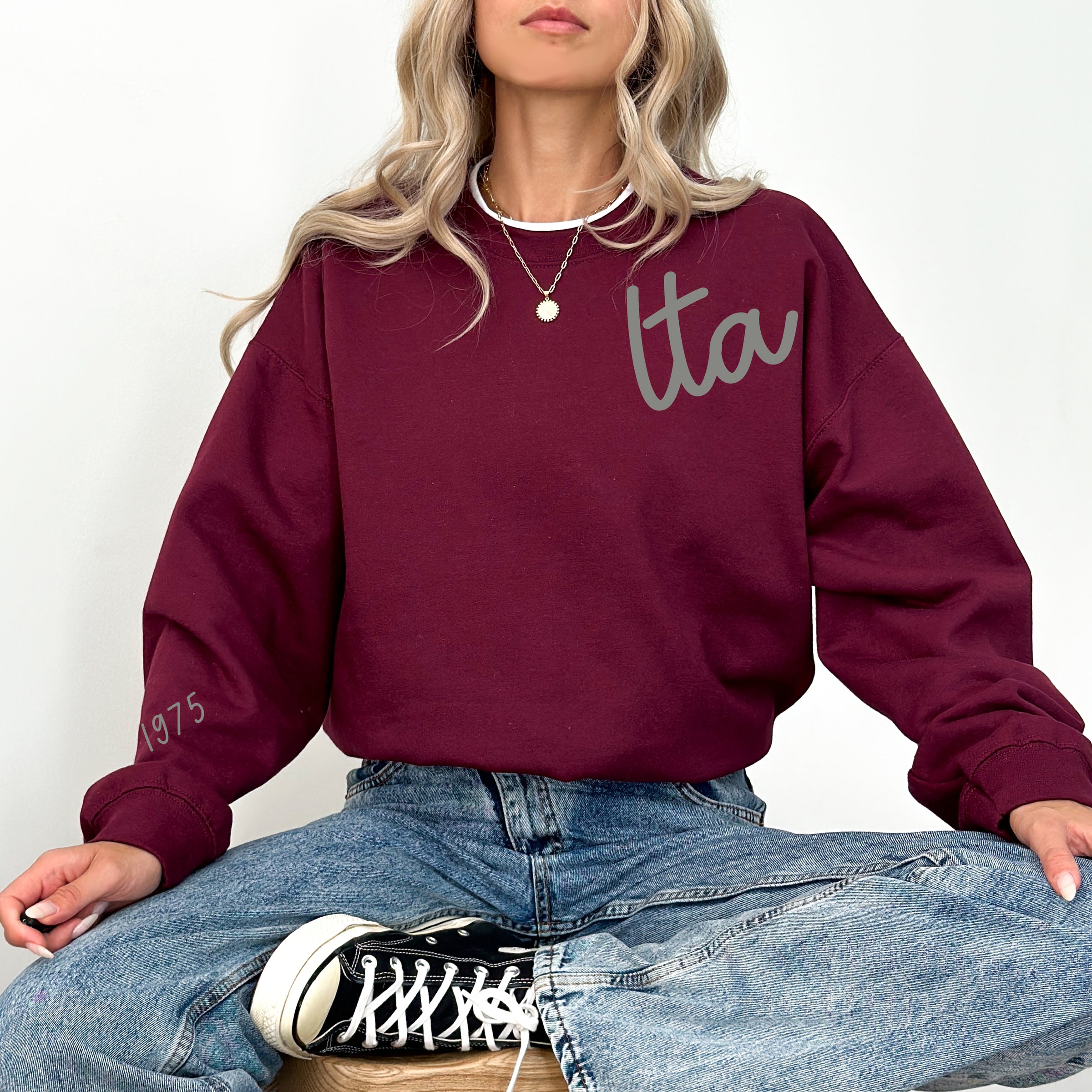 It's time to update your Lambda Theta Alpha crewneck collection! Available now...our lta 1975 crewneck available in maroon with grey print