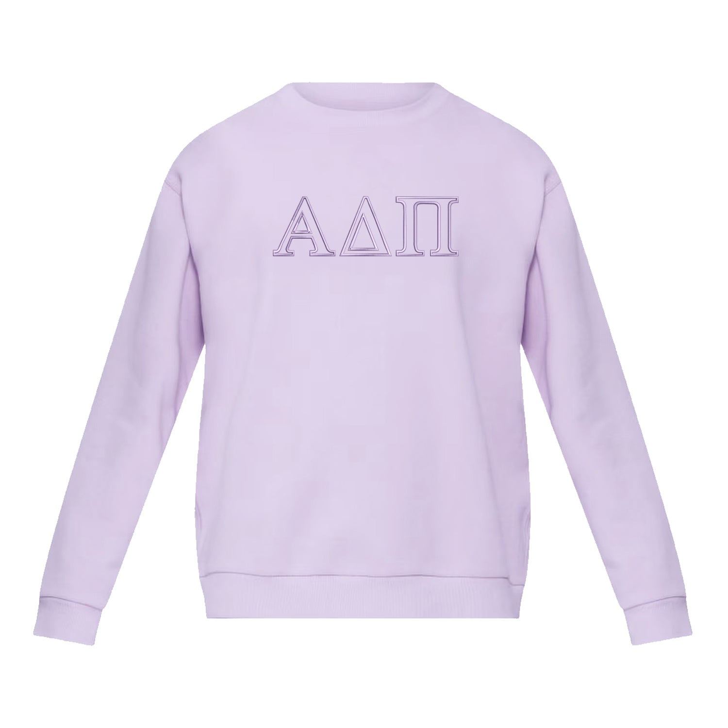 Made by lululemon, brought to you by Sorority Letters Shop. Consider your classic sweats officially elevated. Steady State puts softness first to bring comfort wherever you go. Perfectly oversized unisex fit. Cozy fleece is brushed on the inside for next-to-skin warmth. Crewneck sweatshirt in lavender frost is embroidered with large Greek letters in tonal lavender. Soft, cozy, casual.