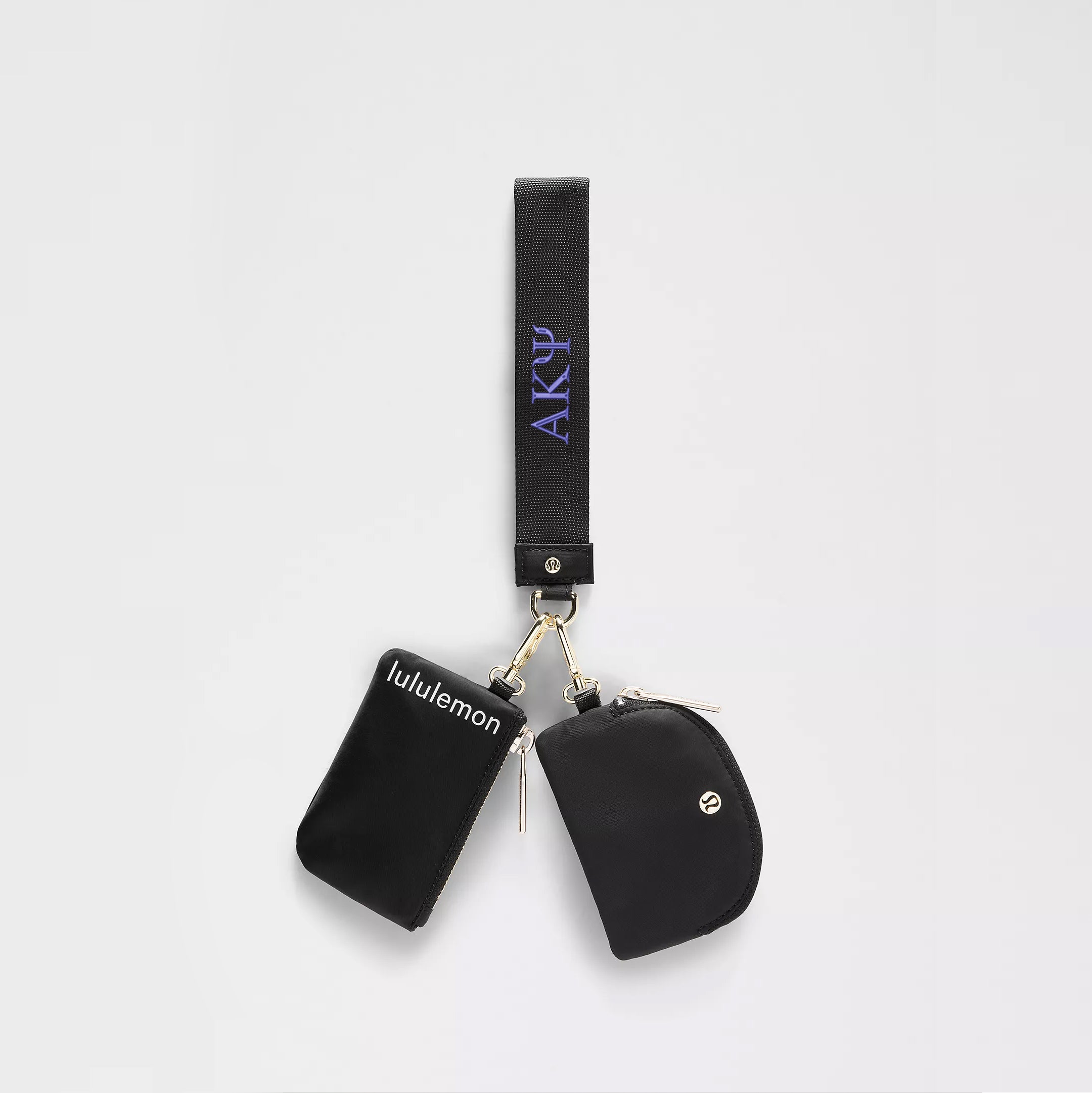 Never lose your keys again and be ready to go with the flick of a wrist. This lululemon Alpha Kappa Psi wristlet comes with two zippered pouches to keep small items in place while you're on the move. Available in black with your Alpha Kappa Psi letters embroidered in dark blue.