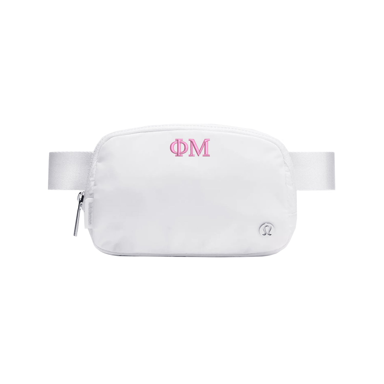 Made by lululemon, brought to you by Sorority Letters Shop, the quintessential crossover bag has arrived. Phone... check. Keys... check... ID check... Keep it all in one place: close and convenient! 1L everywhere belt bag comes in white, embroidered with the Phi Mu Greek letters in pink. Buy for yourself or for your new favorite Phi Mu pledge.... makes a great big or lil gift.