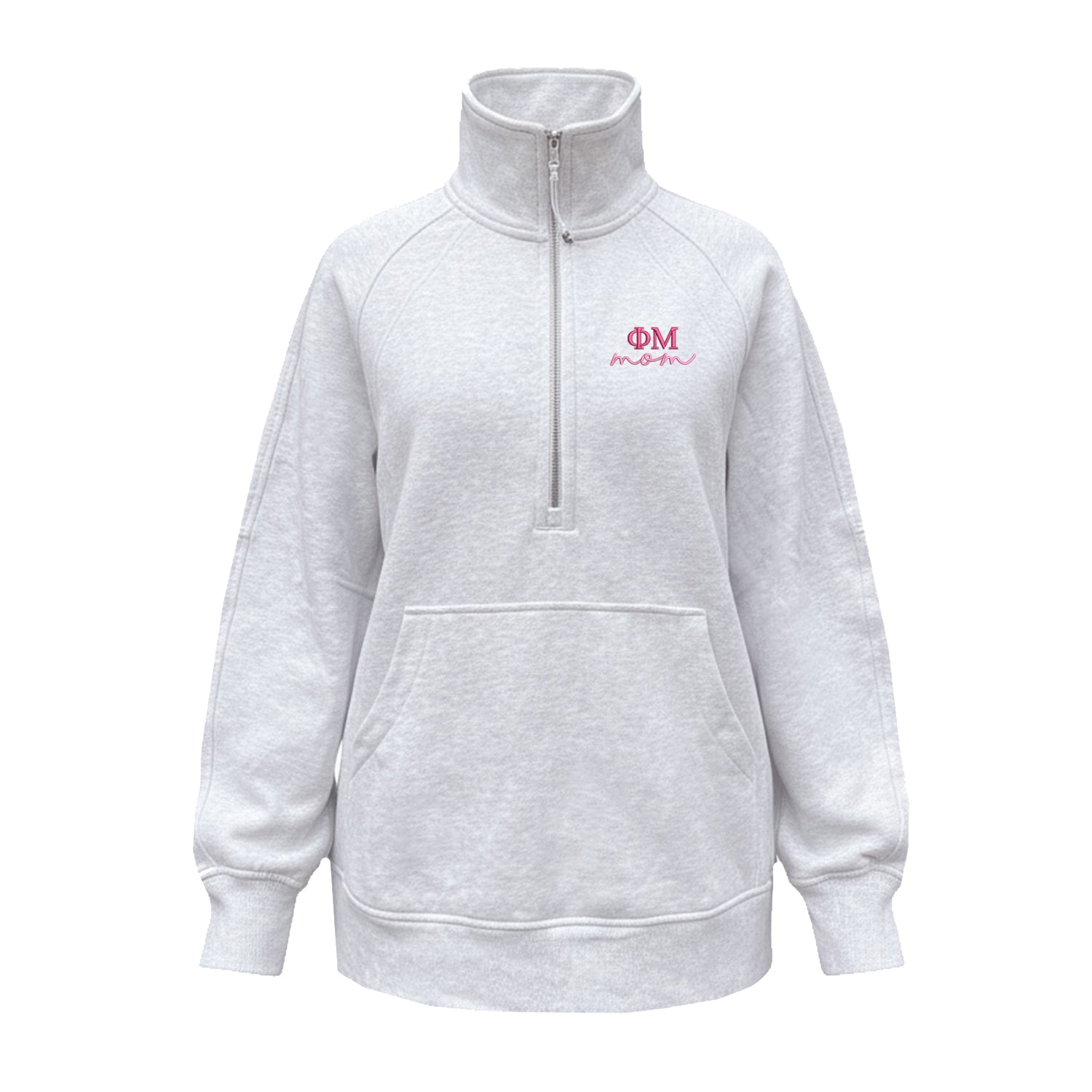 Made by lululemon, brought to you by Sorority Letters Shop, this long scuba funnel neck comes embroidered with the Lambda Phi Mu letters MOM design.