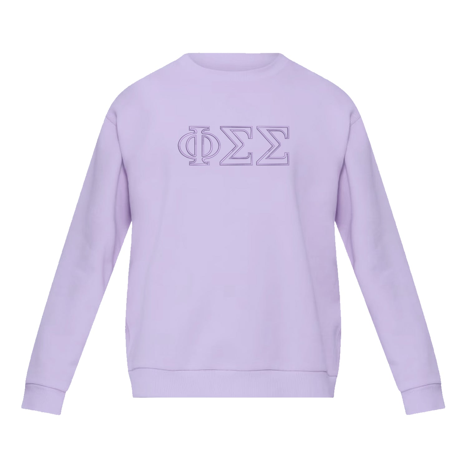 Made by lululemon, brought to you by Sorority Letters Shop. Consider your classic sweats officially elevated. Phi Sigma Sigma Steady State puts softness first to bring comfort wherever you go. Perfectly oversized unisex fit. Cozy fleece is brushed on the inside for next-to-skin warmth. Crewneck sweatshirt in lavender frost is embroidered with large Phi Sigma Sigma outlined letters in tonal lavender. Soft, cozy, casual.