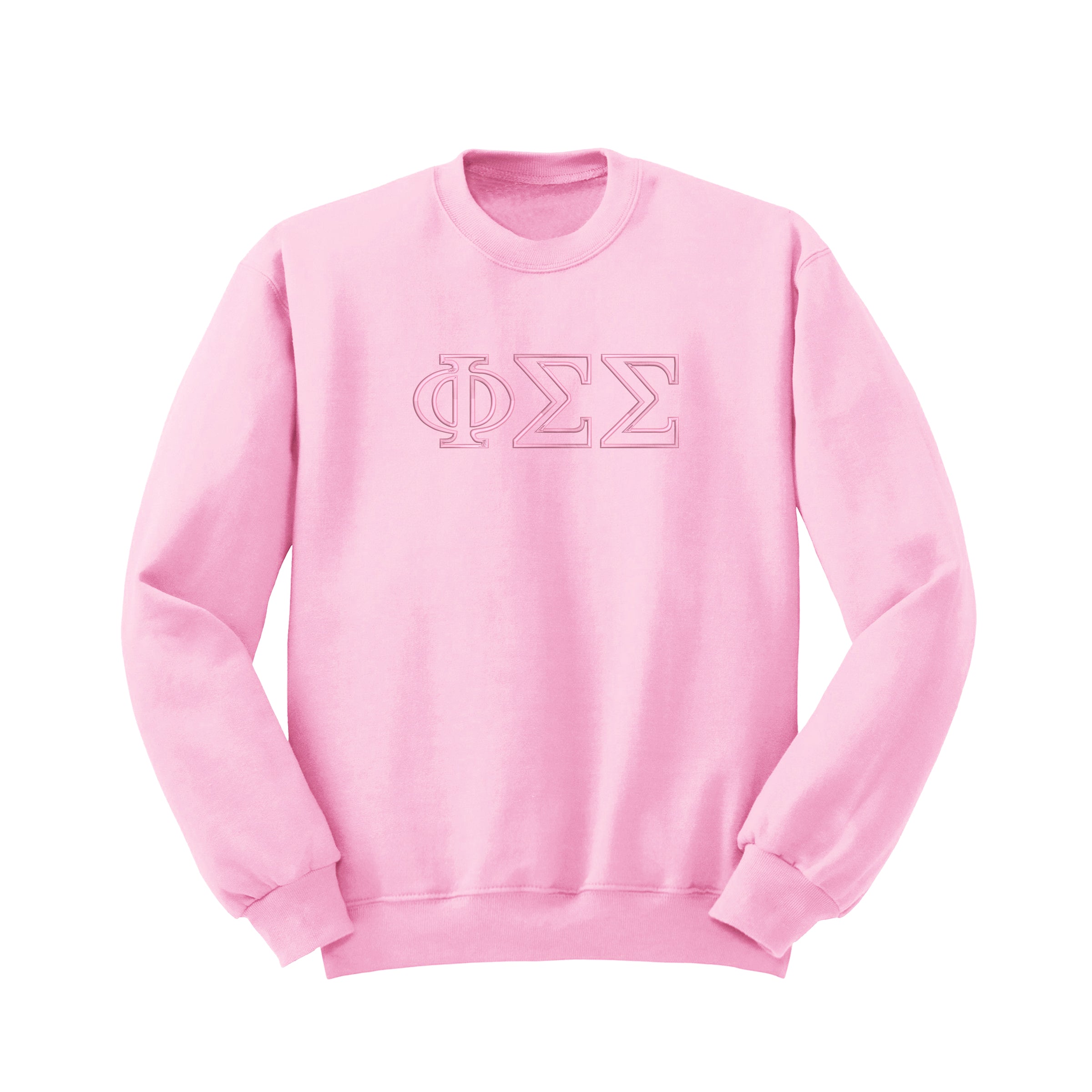 Classic crewneck sweatshirt comes embroidered with the Phi Sigma Sigma Greek letters across the front. Unisex sizing S-4XL.