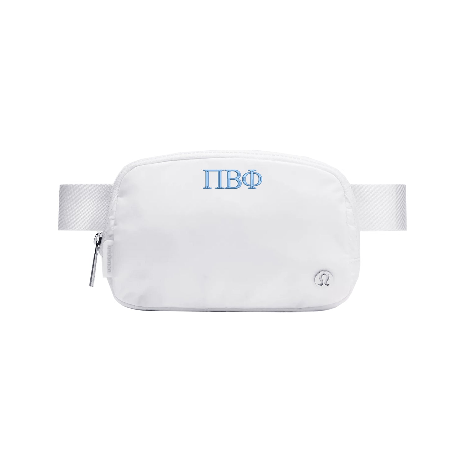 Made by lululemon, brought to you by Sorority Letters Shop, the quintessential crossover bag has arrived.  Phone... check. Keys... check... ID check... Keep it all in one place: close and convenient!  1L everywhere belt bag comes in white, embroidered with the Pi Beta Phi Greek letters in Heritage Blue.   Buy for yourself or for your new favorite Pi Beta Phi pledge.... makes a great big or lil gift.