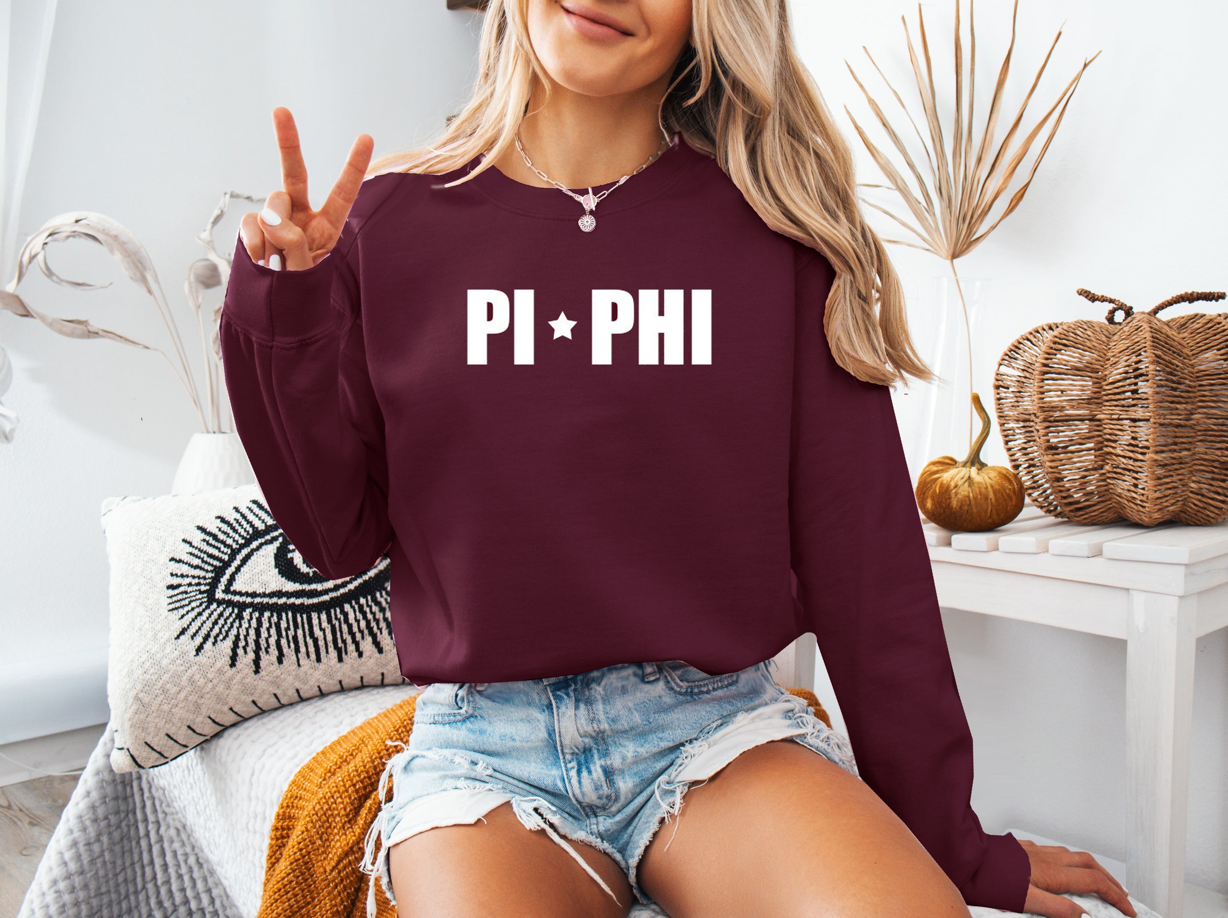 Traditional crewneck sweatshirt comes printed with the Pi Beta Phi logo across the front. Your choice of color. Unisex sizing S-4XL.