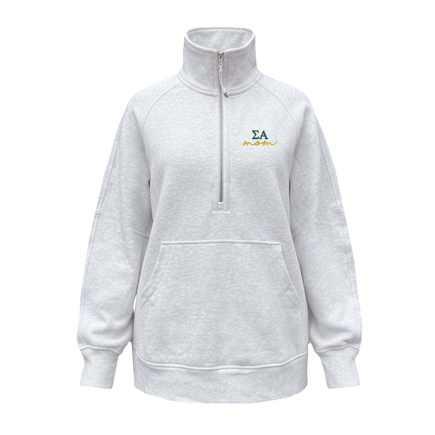 Made by lululemon, brought to you by Sorority Letters Shop, this long scuba funnel neck comes embroidered with the Sigma Alpha Greek letters MOM design.