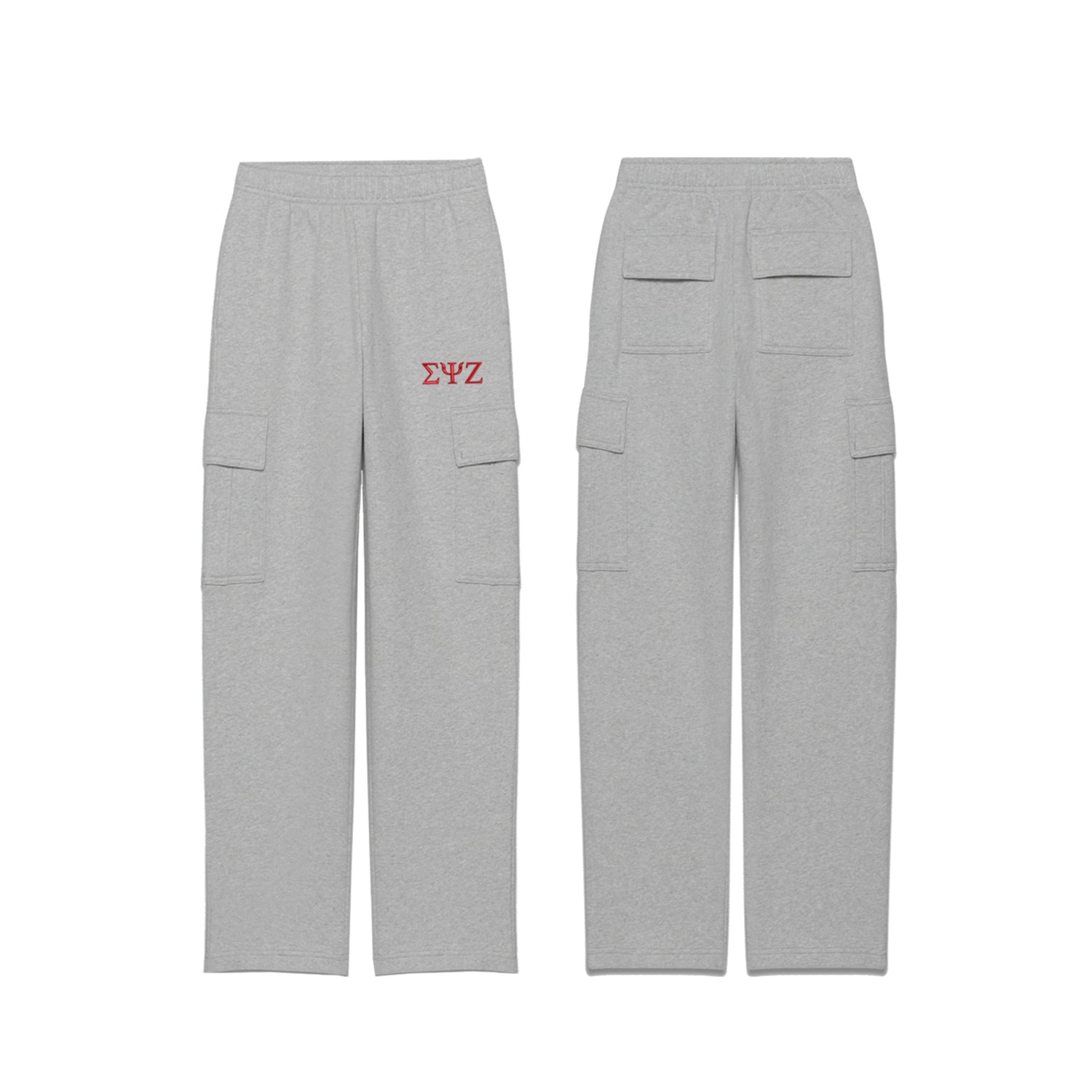Introducing our new Sigma Psi Zeta Fit cargo fleece set. Super cute, hip and COMFY, these new sweatpants are a fall must have! Cargo sweatpants & hoodie, both come embroidered with SYZ Greek letters. The fit is perfectly oversized with classic cargo pockets and wide legs for superior comfort. Mix and match with our Fave Fit shorts to complete the set.