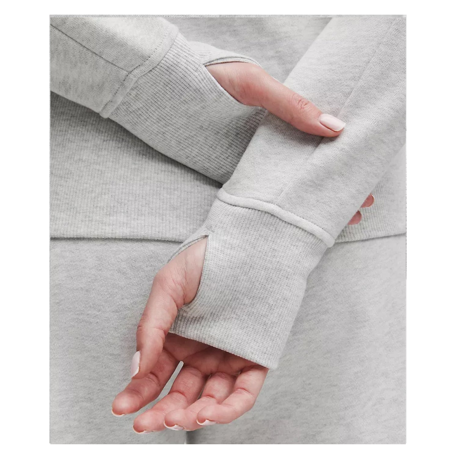 Made by lululemon, brought to you by Sorority Letters Shop, this oversized Scuba full zip funnel neck comes embroidered with the Alpha Epsilon Phi Greek letters and alumna.  Crafted for effortless everyday wear, this cotton-blend fleece delivers natural breathability and gentle comfort against your skin. The oversized silhouette provides generous room to move, while the extended length ensures full coverage of your hips and bum. Lightweight yet warm, it's the perfect layering piece for transitional weather or relaxed lounging.  Choose from navy, black or heathered core ultra-light grey. This must have is the perfect gift for your favorite Alpha Epsilon Phi alumn.