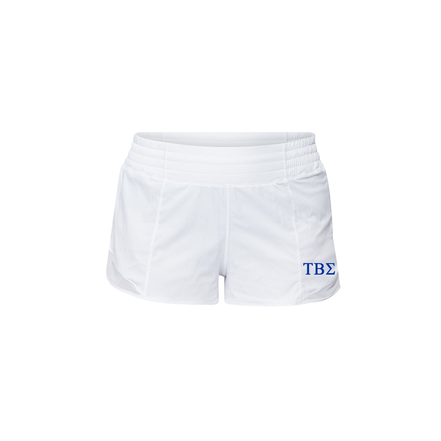 The fan-favourite short that does it all. Made by lululemon, brought to you by Sorority Letters Shop. A roomy fit and mesh panels allow for unrestricted movement and airflow, whether you're running, lifting, or working out. Available in white with Tau Beta Sigma Greek letters printed in royal on the left leg.